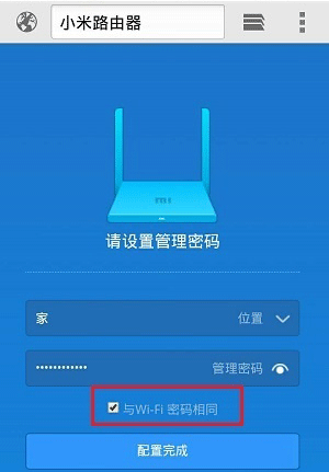 2、管理密码可能与这台小米路由器的Wi-Fi密码相同,如下图所示。如果当初创建管理密码的时候,勾选了“与Wi-Fi密码相同”,则WiFi密码就是192.168.31.1的管理密码。